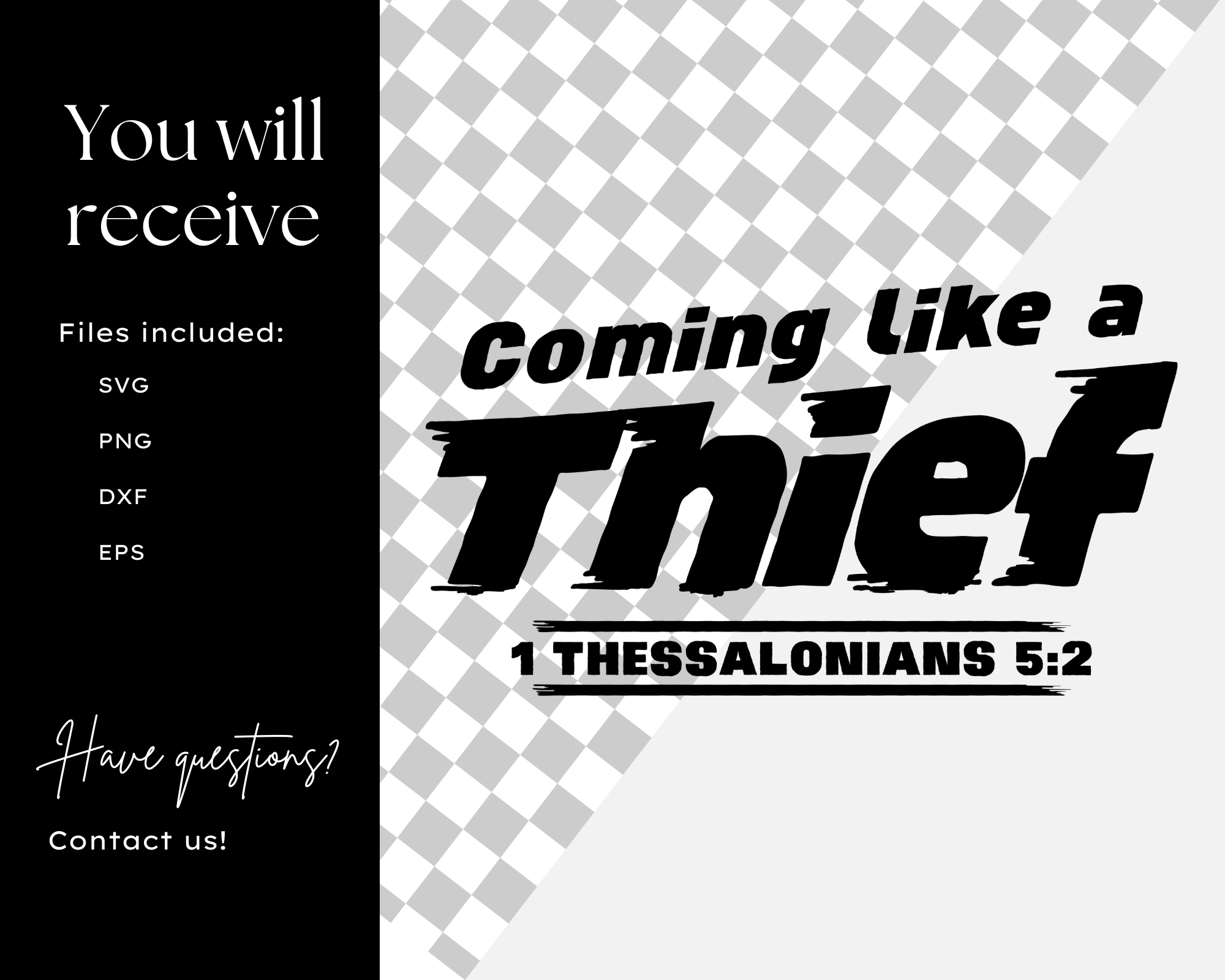 Get this “Coming Like A Thief 2 SVG” design for Cricut & Silhouette projects. Perfect for t-shirts, mugs & more. Commercial use included. Instant download!