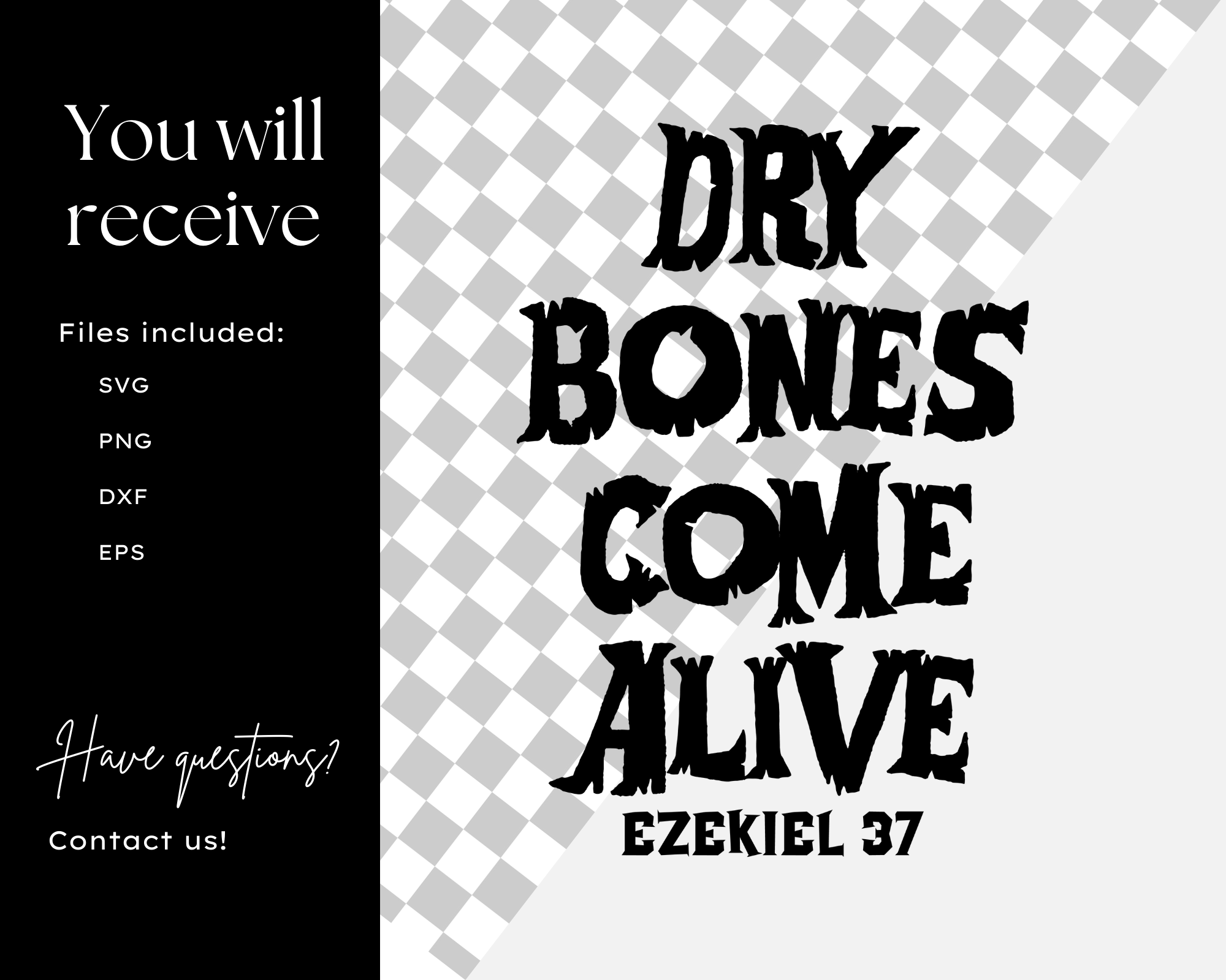 Get this “Dry Bones Come Alive SVG” design for Cricut & Silhouette projects. Perfect for t-shirts, mugs & more. Commercial use included. Instant download!