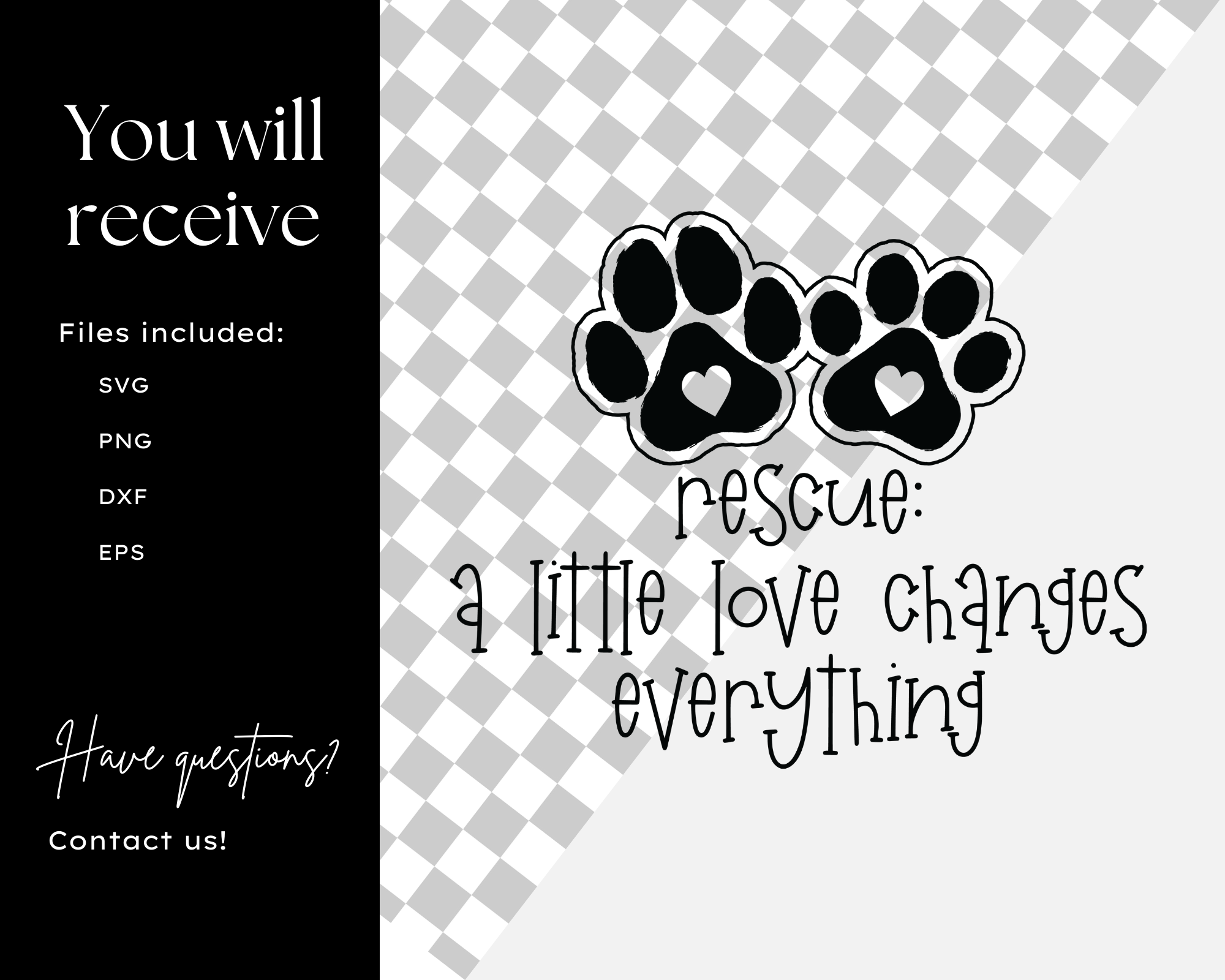 Get this “Rescue A Little Love Changes Everything SVG” design for Cricut & Silhouette projects. Perfect for t-shirts, mugs & more. Commercial use included. Instant download!