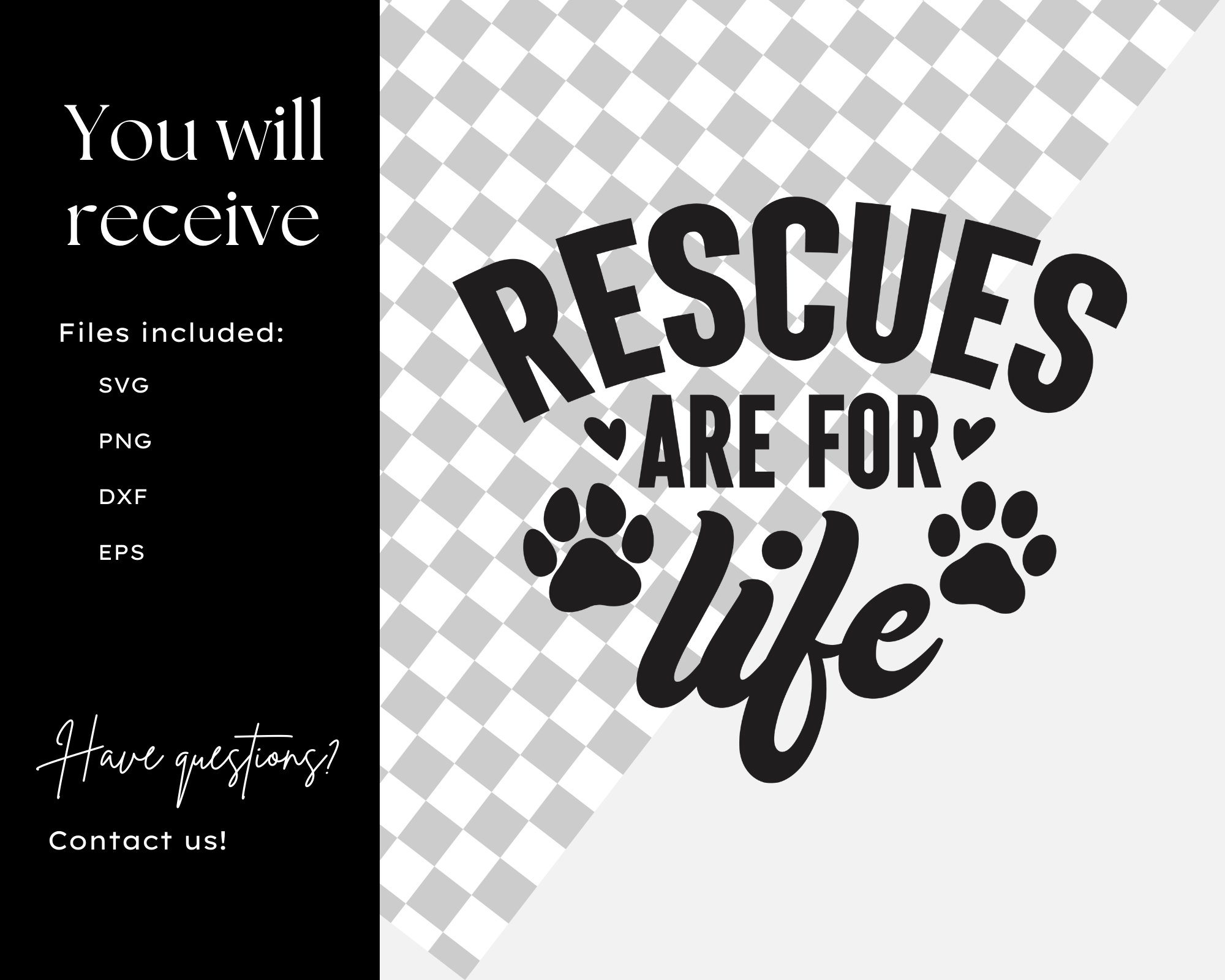 Get this “Rescues Are For Life SVG” design for Cricut & Silhouette projects. Perfect for t-shirts, mugs & more. Commercial use included. Instant download!