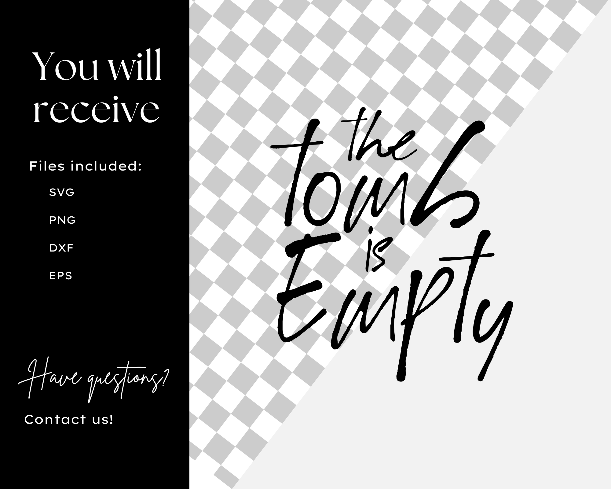 Get this “The Tomb Is Empty SVG” design for Cricut & Silhouette projects. Perfect for t-shirts, mugs & more. Commercial use included. Instant download!
