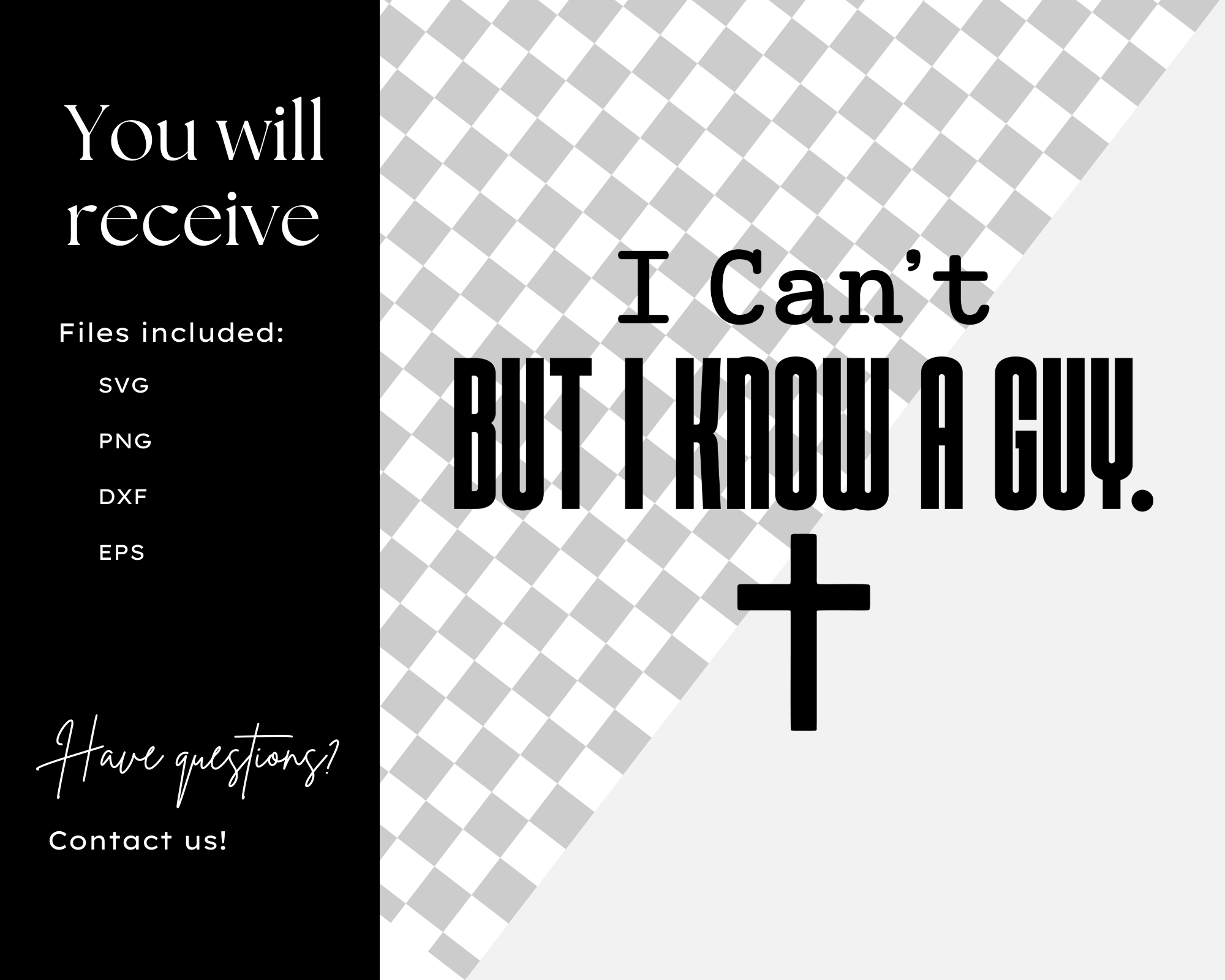 Get this “I Can’t But I Know A Guy SVG” design for Cricut & Silhouette projects. Perfect for t-shirts, mugs & more. Commercial use included. Instant download!