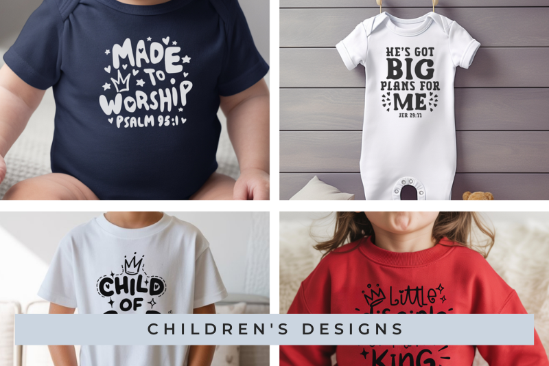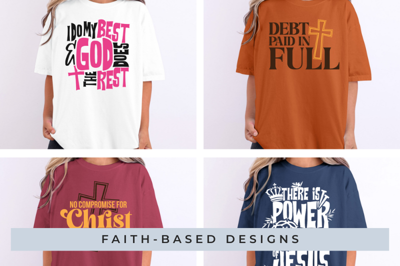 We specialize in faith-based designs. Bible verses, worship lyrics, Christian symbols, ministry themes, church events, etc.